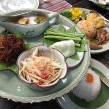 บรรยากาศภายในร้าน ร่มรื่น และเป็นธรรมชาติมากค่ะ มีทั้งที่เป็นห้องแอร์ และแบบกลางแจ้ง แม้จะเป็นตอนกลางวัน แต่อากาศก็ไม่ร้อน เพราะบริเวณร้าน รายล้อมไปด้วยต้นไม้ มีน้ำตกอยู่ในสวนด้วยค่ะ การตกแต่งร้านก็เป็นแบบไทยๆ ดูแล้วสวยงาม พนักงานในร้านแต่งกายด้วยชุดไทย ยิ้มแย้มแจ่มใส และบริการดีค่ะ รสชาติอาหารก็อร่อย มีความเข้มข้น และจัดจ้านตามแบบฉบับไทยแท้ค่ะ