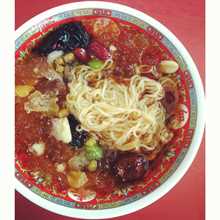บะหมี่ไข่ หอมๆ ลวกใหม่ๆ แต่กินในน้ำเต้าทึง เครื่องมาเต็มทั้งบ๊กเกี้ย พุทราจีน เฉาก๊วย แปะก๊วย เย็นสดชื่น ในราคาเพียง 30 บาท ร้านเล็กสุดๆ มี โต๊ะเล็กๆให้นั่ง 2 โต๊ะ